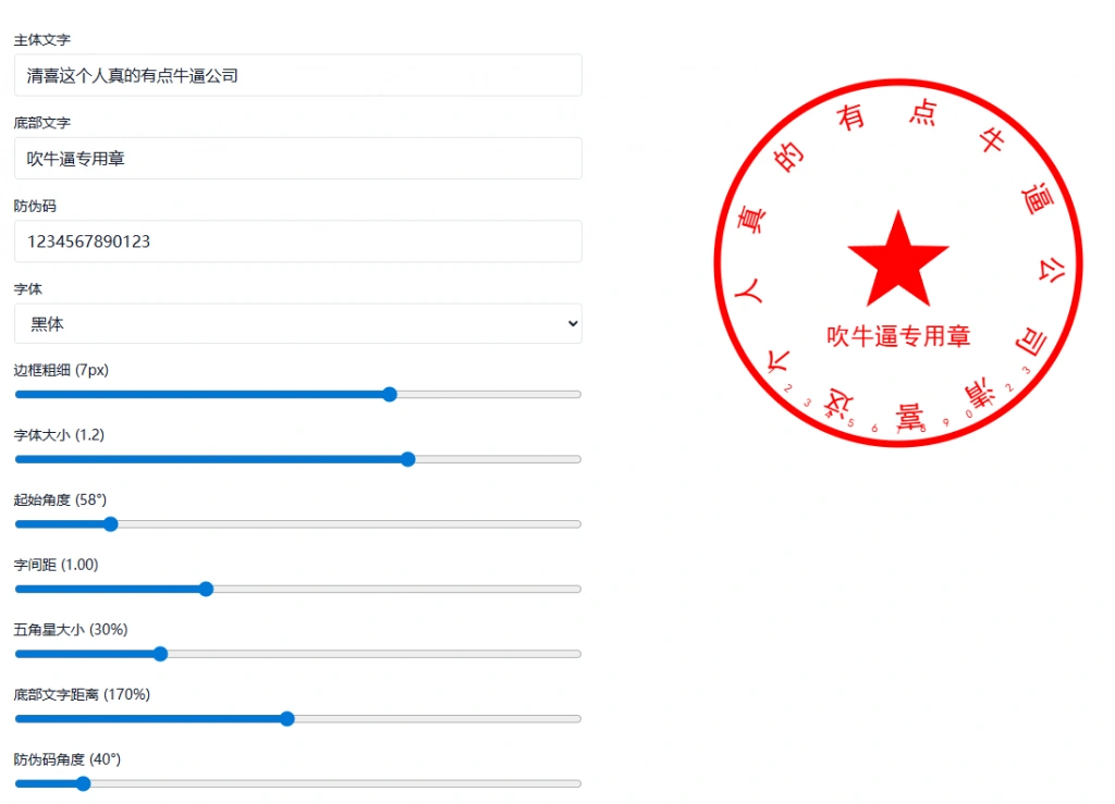 在线印章生成工具(有提取):https://onepage.czl.net/tools/seal_generation/