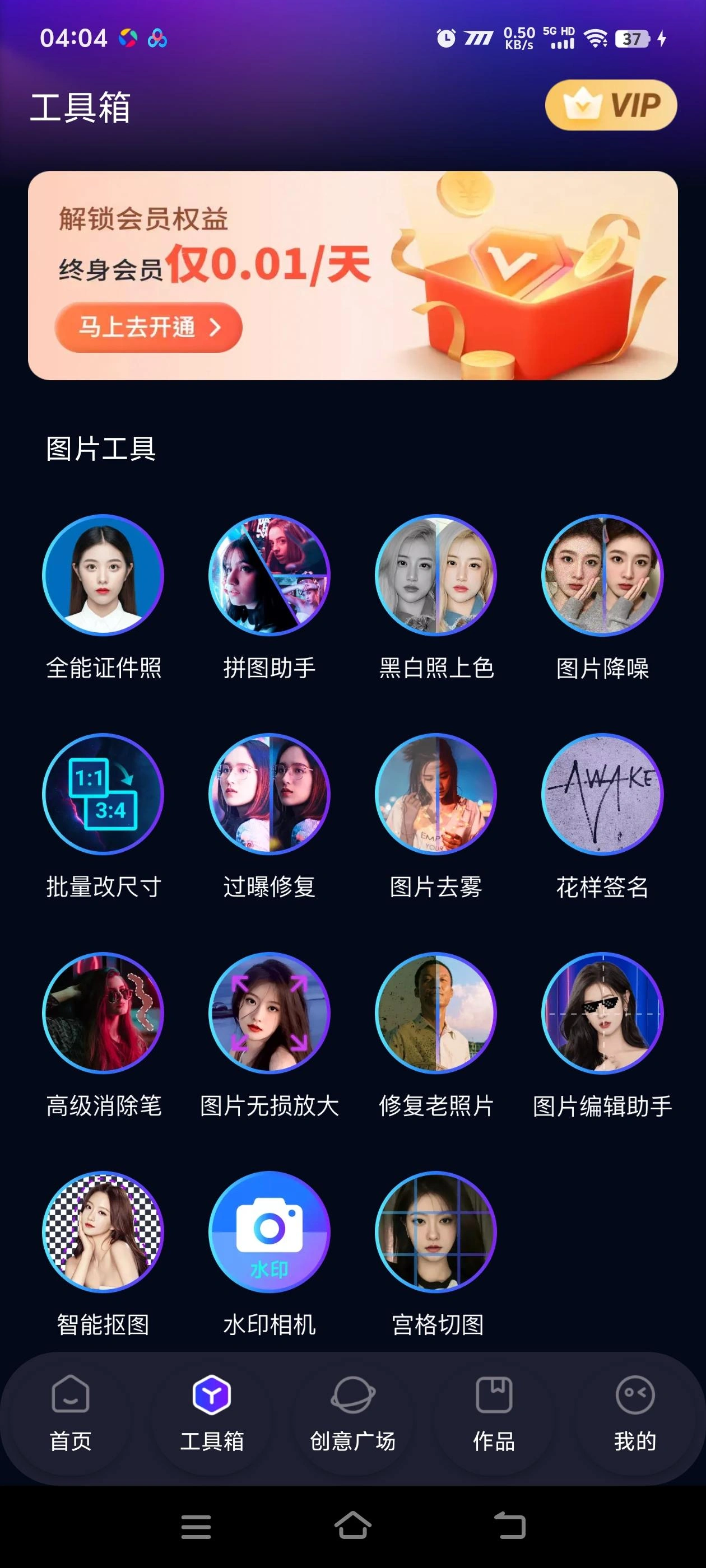 - 打开软件就能轻松找到文字生图、风格选择、智能抠图、老照片修复等热门模块。