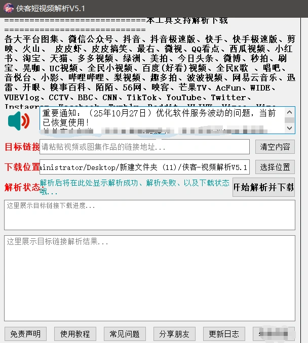 - 各大平台图集、微信公众号、抖音、抖音极速版、快手、快手极速版、剪映、火山、皮皮虾、皮皮搞笑、最右、微视、QQ看点、西瓜视频、小红书、淘宝、天猫、多多视频、绿洲、美拍、今日头条、微博、秒拍、刷宝、晃咖、UC视频、全民小视频、百度(好看)视频、全民K歌、唱吧、音悦台、小影、哔哩哔哩、梨视频、趣多拍、波波视频、网易云音乐、迅雷、开眼、糗事百科、陌陌、56网、映客、芒果TV、AcFun、WIDE、VUEVlog、CCTV、BBC、CNN、TikTok、YouTube、Twitter 等300+平台